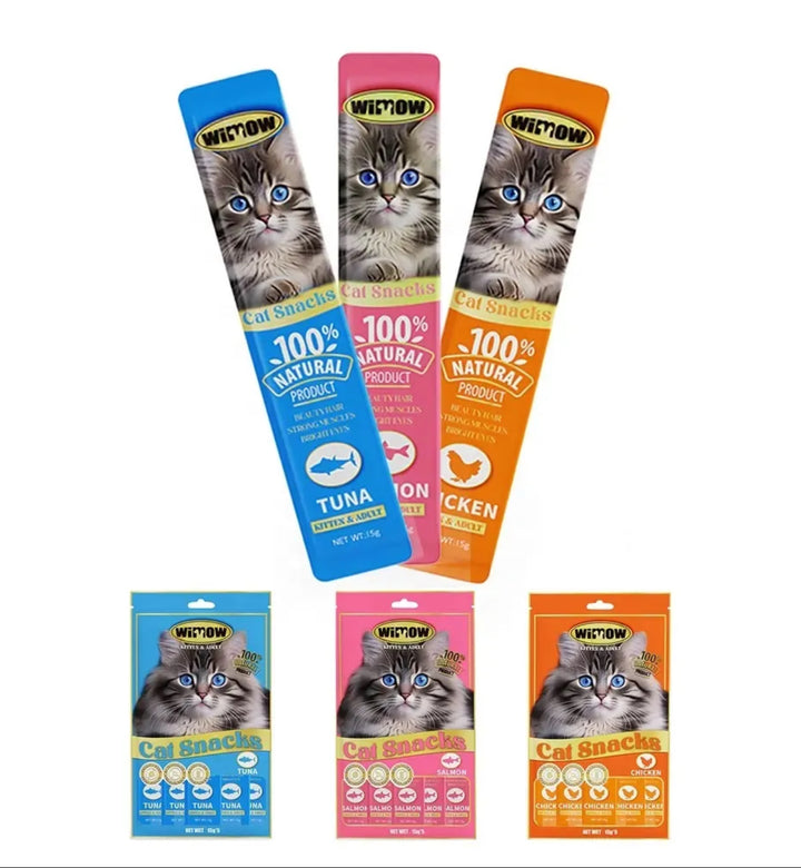 Fluffy Catfood 1.2Kg offers a premium blend of high-quality ingredients, providing essential nutrients for a shiny coat, strong muscles, and boundless energy. Pair it with Wimow Cat Snacks, featuring 5 deliciously tender strips per pack, for the perfect treat or reward that will have your cat begging for more!